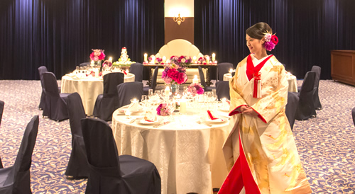 優雅に寛げるソファタイプの高砂からは、すべてのお席が見渡せます。